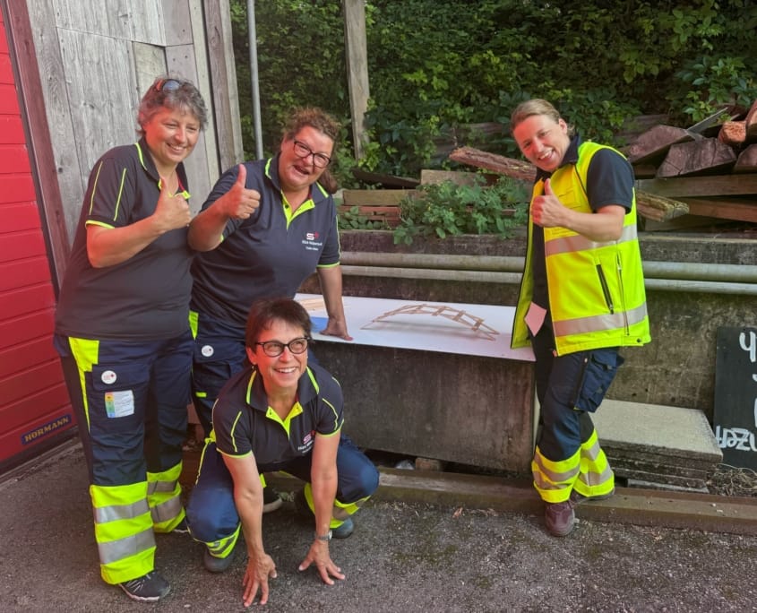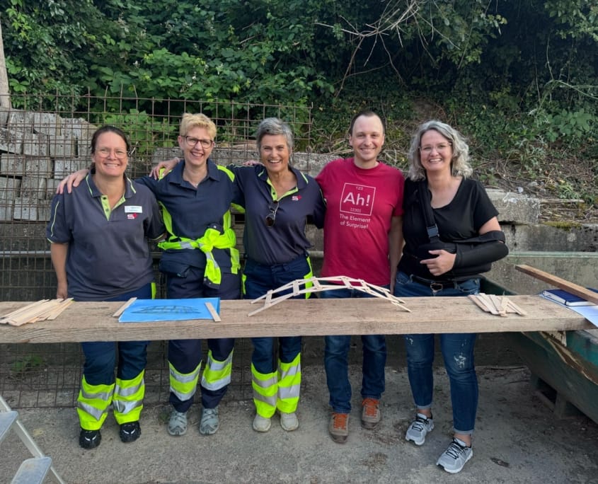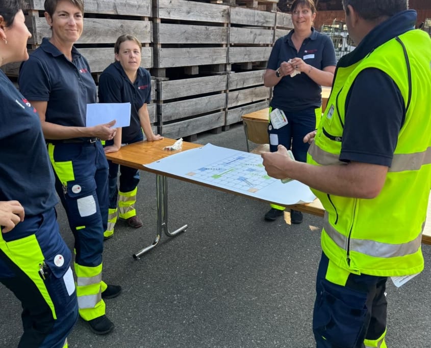 Im Fokus der diesjährigen Übung stand die Teamkommunikation. Eine besonders kreative Aufgabe bestand darin, aus Holzstäbchen eine Brücke zu bauen – mit einer besonderen Herausforderung: Nur ein Gruppenmitglied durfte den Bauplan sehen und musste dann die restliche Gruppe mündlich anleiten. Diese Übung zeigte eindrücklich, wie wichtig klare und strukturierte Kommunikation in der Notfallarbeit ist.